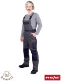 - możliwość regulacji w pasie dzięki dodatkowym guzikom oraz długości szelek, które to dodatkowo mają w tylnej partii gumkę